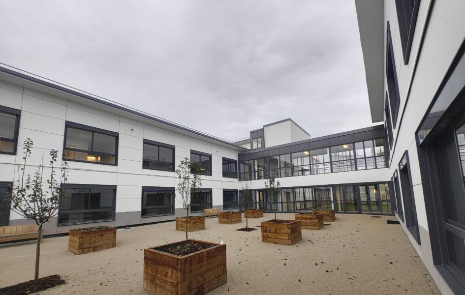Fourniture et pose de 2350m2 de murs ossatures bois verticaux avec encadrement de fenêtres monobloc